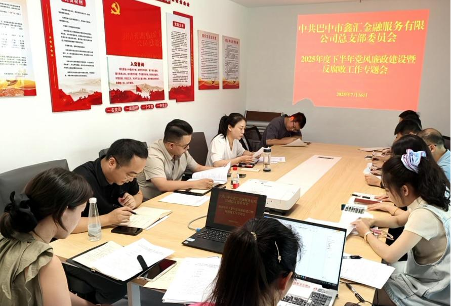 為深入貫徹落實全面從嚴治黨要求,總結(jié)部署黨風廉政建設(shè)工作,為公司高質(zhì)量發(fā)展提供堅強紀律保障,7月16日上午,中共巴中市鑫匯金融服務(wù)有限公司總支部委員會召開2025年度下半年黨風廉政建設(shè)暨反腐敗工作專題會。公司黨總支書記、董事、總經(jīng)理陳家龍主持會議并講話,全體職工參加會議。